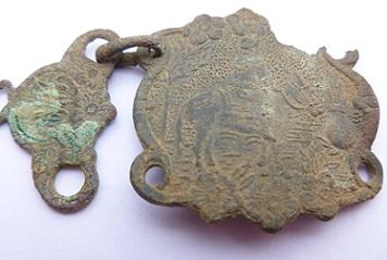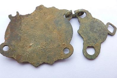 J'ai trouvé il y à quelles années ce genre de plaque que l'on m'avais identifié comme étant peut être un reste de châtelaine, un peu comme l'exemple ci dessus....