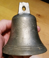 Quelqu'un pourrait-il me dater cette sympathique petite cloche et me dire en quel métal elle est faite ? Hauteur 9 cm, diamètre 8,5 cm.