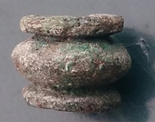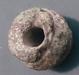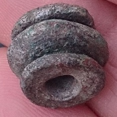 voici ce que je pense etre une perle en bronze mais je ne sais dire si elle date de l'age du bronze ou de l'ere gallo-romaine