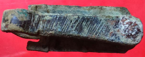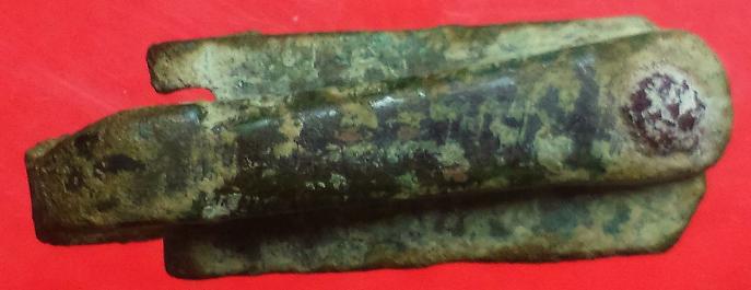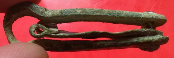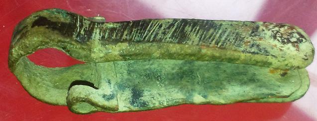 Merci pour ton intĂ©rĂȘt, j'aimerais que ça soit antique mais je ne suis pas certain, je dis ça rapport Ă l'Ă©tat gĂ©nĂ©ral, et surtout le rivet qui est je crois en fer, il n'aurait surement pas survĂ©cu aussi longtemps. Je situe ça grand grand max XVIeme, et je pense ĂȘtre large en disant ça...mais bon, peut ĂȘtre que je me trompe...