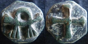 n°127410R0 - Objet en plomb avec croix au milieu |