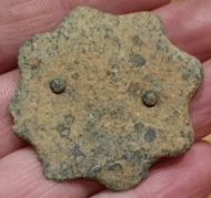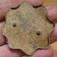 Voici un curieux objet en forme d'étoile trouvé dans une forêt parmi des objets militaires. C'est assez léger et ça fait 4,5 cm de diamètre.