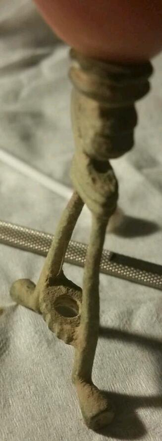 Bonsoir Ă  tous je vous poste cet objet que je trouve trĂšs beau mais non je ne sais pas Ă  quoi il sert j'ai commencĂ© Ă  le nettoyer je finirai plus tard cet objet me fait penser Ă  une tĂȘte sur le dessus Ă  confirmer il y a un trou en bas et un trou juste en dessous de la tĂȘte la tĂȘte n'est pas trouĂ© de haute en bas cela m'a fait penser Ă  un pendentif mais je ne suis pas sĂ»r du tout.