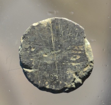 voici ce que je pense être une matrice de sceau, malheureusement assez abimée par un séjour prolongé dans une terre irrespectueuse de l'intégrité physique de ses occupants...