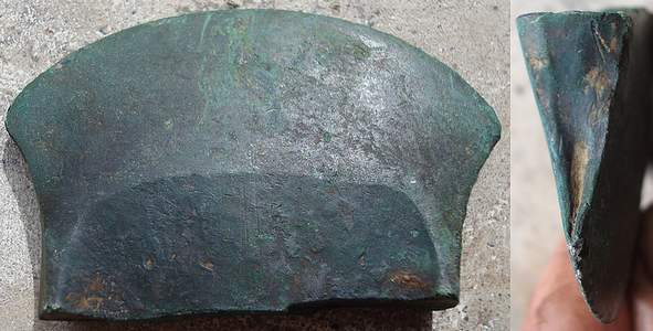 Pour moi c'est du cuivre ... Si tu veux voir l'état de surface d'un hache en cuivre, va voir le post 89442 ... ... Il y en a d'autre sur le forum.