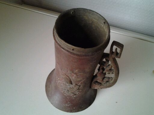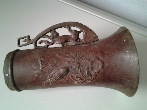 Bonjour à tous,je vous présente un objet en bronze conique découvert dans bois du 76,je n'ai aucune idée de sa fonction,je pense peut être à un truc pour la chasse,vu le renard,malgré mes recherche sur le net aucune piste, rien !.Pourriez vous m'aider à l'identifier? MERCI!