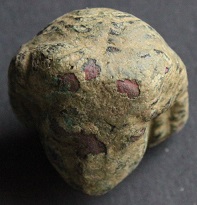 En tout Ă©tat de cause, la surface du bronze Ă©tant mĂȘlĂ© Ă une croĂ»te glacĂ©e de terre (que tous les restaurateurs de trouvailles fortuites angoissent lorsqu'il l'aperçoive...), je ne peux pas aller plus loin dans sa restauration...