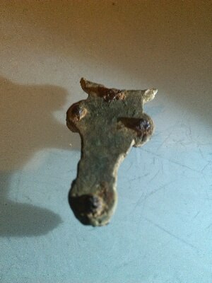Bonsoir a tous ,voici un objet trouvé par un pote ,il mesure 3,5cm sur 3 cm ,je n ai pas le poids,semble être en bronze ,découvert dans le 03,il me semble que ce soit une fibule mais si quelqu’un pouvait le confirmer ou l infirmer ce serait sympa, merci a vous