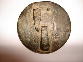 'Schere mit Initialen 'P S'. 4 x 6 mm.
