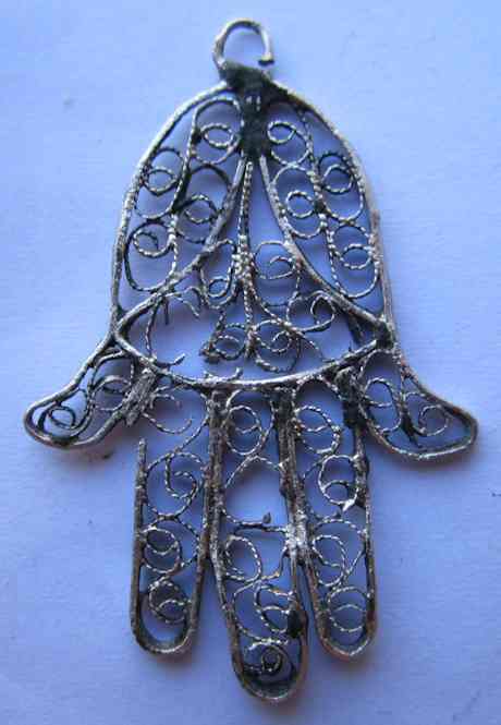 Sur le site que je donne plus haut, ce genre de ''talisman'' peut ou pourrait être aussi bien juif que musulman et n'a rien de religieux , mais les personnes qui le portent y voit là , un signe protecteur