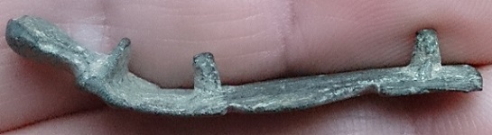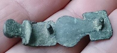 Pour debuter cette année je vous soumet ce petit artefact que j'ai pris au debut pour un fragment de fibule mais qui ne l'est pas quand on constate le type de fixation au revers.