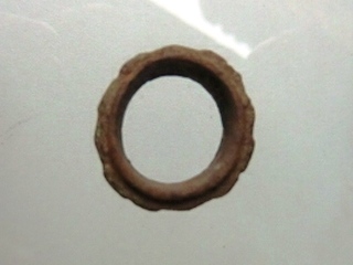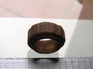 Je pense qu'il est en bronze malgré sa patine trompeuse, il mesure 22mm. de diamètre extérieur et 16mm. intérieur env. par 10mm. de large