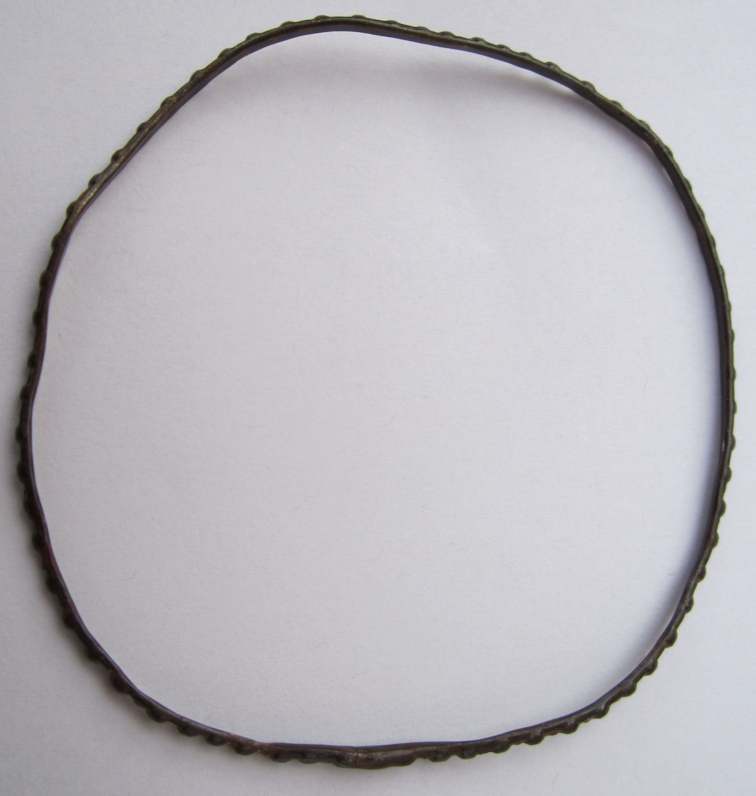 Sous forme de jonc très fin, il est lisse a l'intérieur et présente des bossettes irrégulières sur le pourtour extérieur.