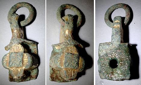Merci Vincent , tu m'as mis sur la voie, d'après ce que je vois sur internet je ne sais pas si c'est la même chose qu'une vervelle mais il y a des pendants de harnais à la croix qui sont dans le même style. XIIIè XIVè.