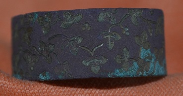 Ces bagues larges en cuivre sont assez courantes et portent des symboles stéréotypés liés à l'amour (cœurs, oiseaux...) et à l'héraldique (fleurs de lys, croix de lorraine...). J'en ai une qui a à la place de tes feuilles de lierre des sortes d'écailles comme pour imiter la texture du cuir, et qui porte comme motif central un blason avec une aigle bicéphale. Elles sont à dater je pense à partir de la toute fin du XIX ème (je dirais 1890 mais en tout cas pas avant 1870 c'est certain) et jusqu'au début du XX ème : 1910 ? 1930 ? La datation d'Augraiduvent est la meilleure : autour de 1900. Ce qui est étonnant et tout à fait charmant dans ces bagues c'est leur aspect artisanal.