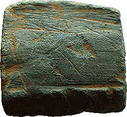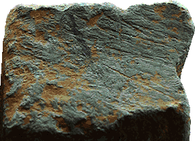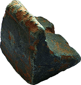 Au moins une des faces de ce volume semble être une cassure (voir 3ème photo), ancienne car la patine est la même partout. Cela indiquerait que le fragment en question proviendrait d'un objet plus grand (à définir...).