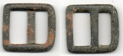 Boucle récente, 20ème siècle, sans doute de harnachement, à traverse abaissée pour compenser l'épaisseur de la courroie.