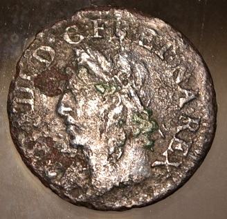 Voici l'une des deux rescapées d'une boursée de 26 monnaies trouvée le mois dernier. Celle ci ne semble pas du même métal que les autres qui sont toutes à la limite de la savonnette. En argent peut être ?