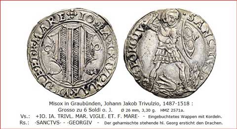 [501] C'est bien entendu une imitation de la rare monnaie de Misox dans les Grisons (Graubunden) en Suisse, représentée en R3 et R8