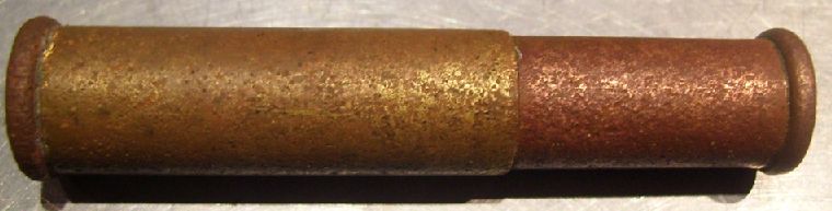 Il mesure 68 mm de long .Le diamètre le plus petit est de 12 mm et l'autre partie en laiton 13 mm. Les 2 extrémités font 15 mm et semblent être enfoncées dans le tube. Il pèse 43,7 gr. Aucun marquage en vue.
