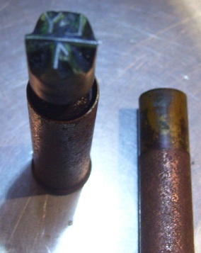 Je vous propose pour identification ce curieux petit cylindre découvert hier dans une forêt du 45, et composé de 2 matériaux différents.