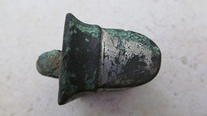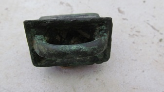 [1895] Bonjour à tous,je vous présente cet objet inconnu pour moi trouvé dans le 54,il mesure 4cm de long,hauteur 4 cm et largeur 2.5 cm,il pése 93 g,il est en bronze avec des traces d'argenture et quelques arabesques sur le haut,merci d'avance pour vos réponses.