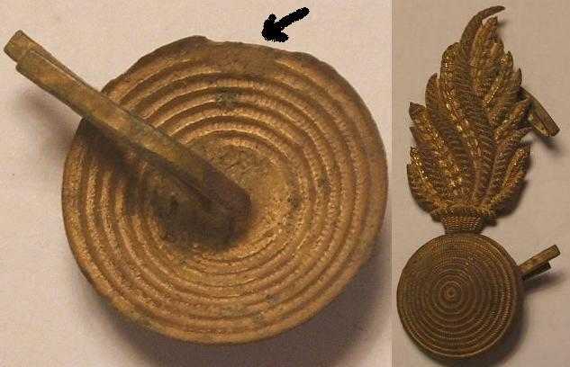 [240] slt , on peut imaginer plein de trucs ... mais ayant déja trouve ce genre d'artefact .... je me lance dans cette piste probable .... fragment d'insigne à la grenade .... pourquoi pas ...