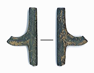 J'ai trouvé cet objet en 2015 dans un champ de la région lyonnaise (Rhône). Fait de bronze ou d'un alliage cuivreux, cet objet mesure 2,5 x 1,3 cm dans ses dimensions maximales, pour un poids de moins de 5 gr.