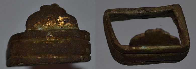 Petit objet trouvé cet après midi, on dirait un entourage de quelque chose. Dimension : 22mm x 15 mm avec restes de dorures.