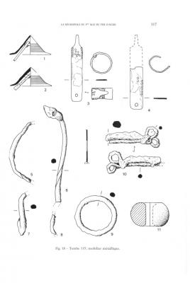 est enroulée, dans un cas une tige en bronze, dans l'autre une tige en fer, ces deux pièces servant de fixation au bouton (fig. 18 n° 1 et 2) ''
