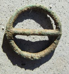 La particularité d'un ardillon en fer pour ce type de boucle en bronze, réduit considérablement les chances d'en observer un, en place ,