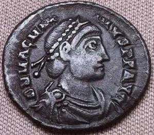 ce qui est sur que cette monnaie est une silique en argent (silique réduite) par contre pour le personnage je ne peux pas affirmer que c'est Magnus Maximus.