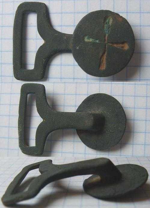 la forme rappelle ceux aux motifs de charles quint du XVIem/XVIIem , mais le reste d'émail bleu sur la croix m'interpelle et me rappelle certaines boucles médiévales , donc une datation plus ancienne ....