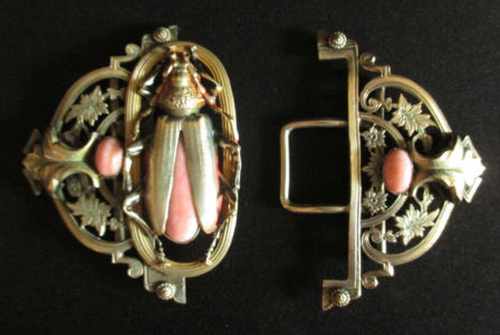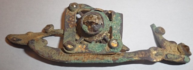 En R1, on voit bien la 'traverse' dessoudée sur laquelle vient se fixer la ceinture. J'ai l'impression qu'en R2, vue la courbure des deux éléments, il faut que tu fasses pivoter d'un demi tour la pièce qui a, disons, une forme de 'Y'. De plus, les deux chatons de droite ne seraient plus masqués. Une des branches du 'Y' passerait-elle juste entre ces deux chatons? Cette boucle de ceinture en deux parties, je l'imagine, complète, avec le carré et ses cinq chatons au centre, solidaire d'une des deux parties de la boucle. L'autre partie étant la simple symétrie, le carré central en moins.