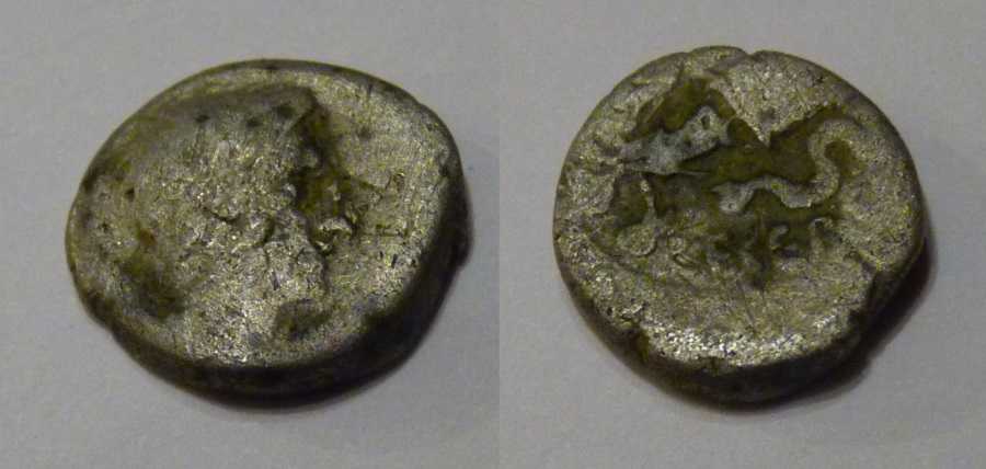 Je sollicite votre sagacité d'ID pour cette monnaie trouvée dans la Drome à proximité du Rhône. Elle fait 13mm de diamètre pour 1,33g.