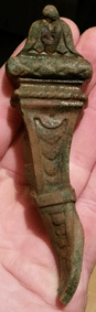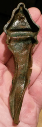 Voici un objet de 11 cm qui semble être un élément d'ornement de je ne sais quoi. Le dos est creux.