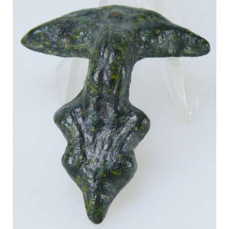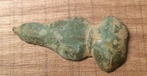 Bonjour, j'y verrai très bien la terminaison d'une anse de vase romain en bronze ( du 2 au 3ème siècle de notre ère ). Amicalement