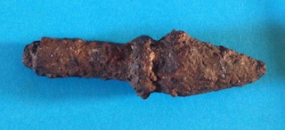 D'une longueur de cinq centimètres, est-ce un reste d'outil agricole ou une pointe d'arbalète ou de baliste ?