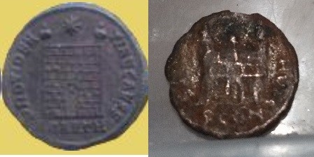 ok pour nummus du quatrième siècle avec une porte de camp surmontée de deux tours je vais chercher de se coter... pour les photo je le fais avec le telephone selon l'éclairage... ma femme a pourtant un reflex avec 3 objectif mais rien de bon pour la marco....