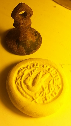 Pour ma part, c'est ma deuxième matrice mais celle là est entière... La première, matrice de sceau en navette était coupée en deux et trés dégradée.