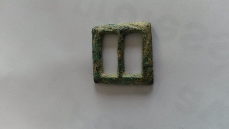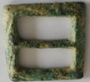 pour resserer un peu l'époque, petite boucle double fenêtre, rectangulaire, le cadre semble décoré, 1580 à 1650.