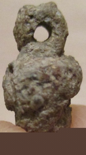 J'aurais besoin de votre aide pour l'identification de ce petit objet en plomb trouvé dans le doubs de 12 mm sur 7mm. Au début j'ai cru que ça allait aller tout droit à la poubelle et je me suis apercu qu'il y a un tout petit trou sur le dessus. Il a un pris un choc sur le coté, voila tout.