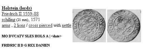 Monnaie XVI° de Frederic II de Schleswig Holstein