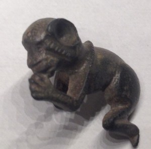 voici un petit singe avec une belle patine et une attache en T comme sur certaines attaches romaines