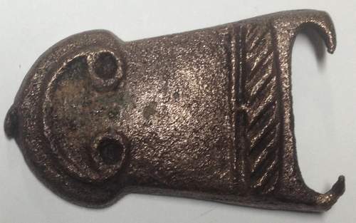Je pense à un genre d'attache de ceinture, par contre je n'ai aucune idée pour la datation, çà ne me parait ni récent ni ancien..