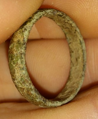 Je lance une idée comme ça car j'en ai trouvé une de ce type, peut être une bague fabriquée à partir d'une monnaie? Là je ne vois rien de spécial mais n'y aurait-il pas des inscriptions à l’intérieur?