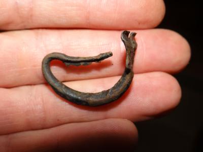 Aprés quelques mois d'absence, voici une petite trouvaille qui pourrait ètre une fibule.Merci de me donner vos avis dans la mesure du possible