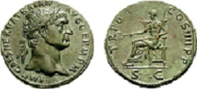 Oui c'est un sesterce de Trajan , pour le revers je pense qu'il s'agit de PAX assise , légende TR POT COS III ( ou IIII )PP // SC. La Paix assise à gauche, tenant un rameau et un sceptre., comme celui ci