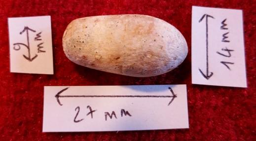L'obet pèse 30 grammes et est en plomb et recouvert, après netoyage, d'une couche blanche et aucun trou n'apparait.
