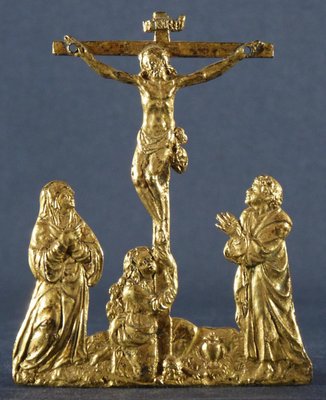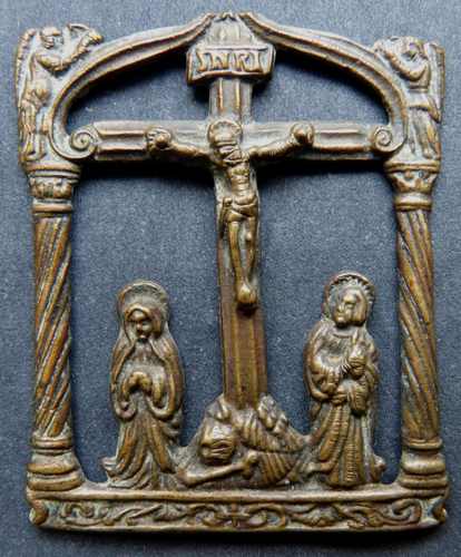 [1276] J'ai trouve une enseigne a la crucifixion dans une forme correspondante, mais pas de revers. Pour l'applique de meuble, je ne pense pas du fait des passants en plus des trous... Mais le style est tres proche par contre. Je vais me concentrer un peu sur ta derniere proposition pour voir si je peux trouver ce support